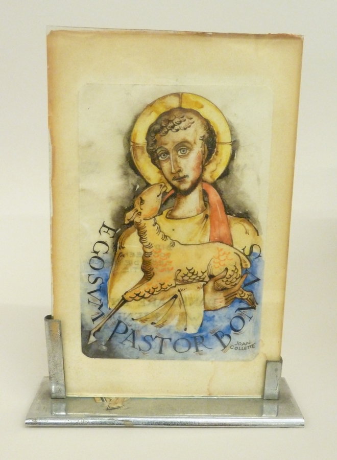 Christus als Goede Herder met randschrift "Ego sum pastor bonus", kz. tekst