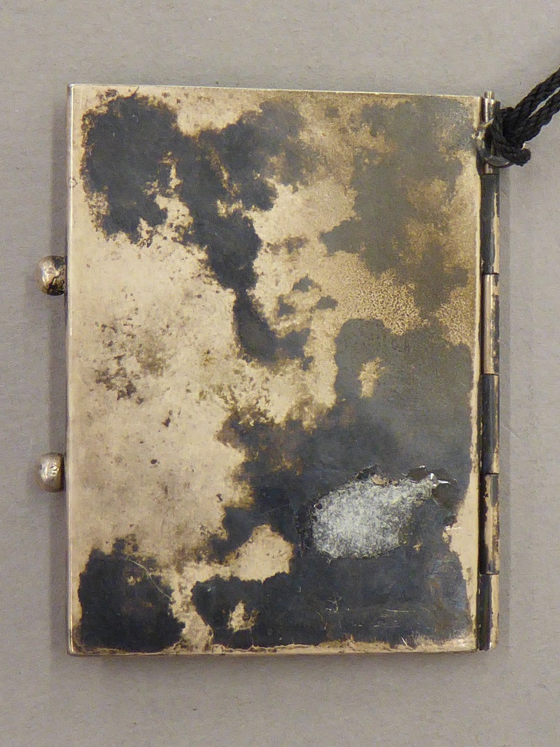 Icoon waaraan zwarte kwast, links met Christus met opgeheven hand, rechts H. Thomas met bijl