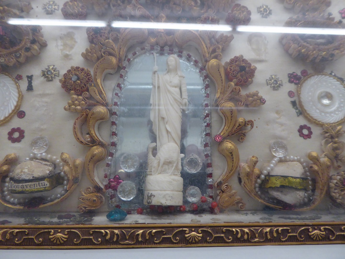 Rechthoekig kastje met relieken en beeldje van St. Agnes