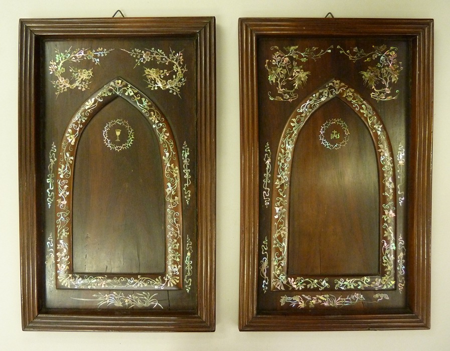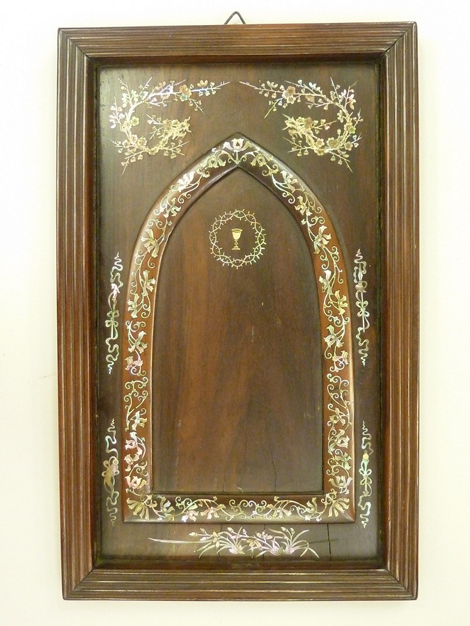 Paneel met in parelmoer ingelegde IHS in doornenkrans en bloemranken