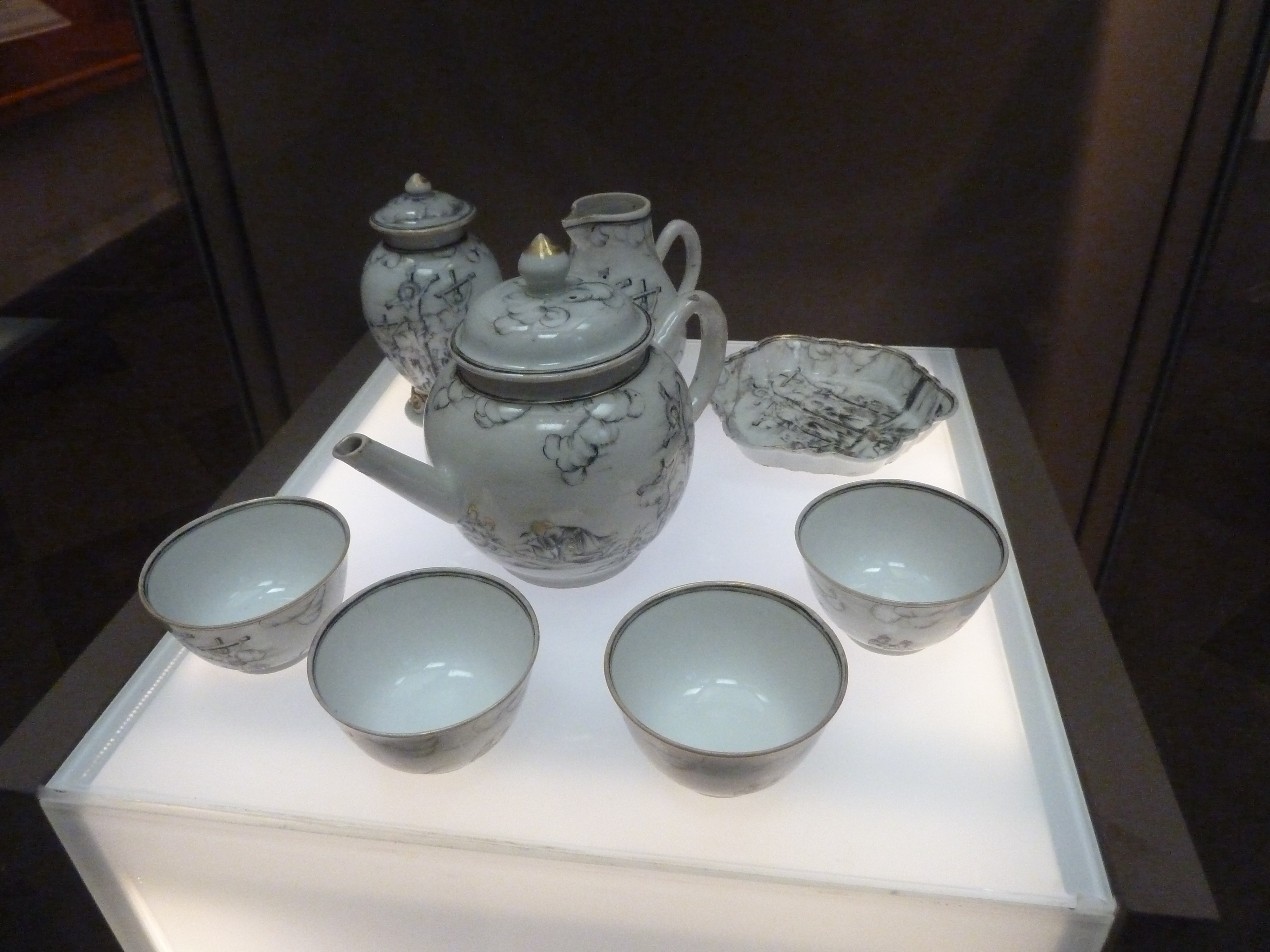 Servies, 36-delig, waarop voorstelling van calvarie, kopje