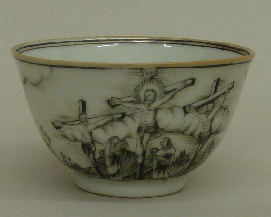 Servies, 36-delig, waarop voorstelling van calvarie, kopje