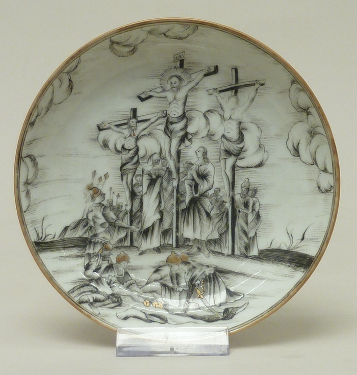 Servies, 36-delig, waarop voorstelling van calvarie, schotel