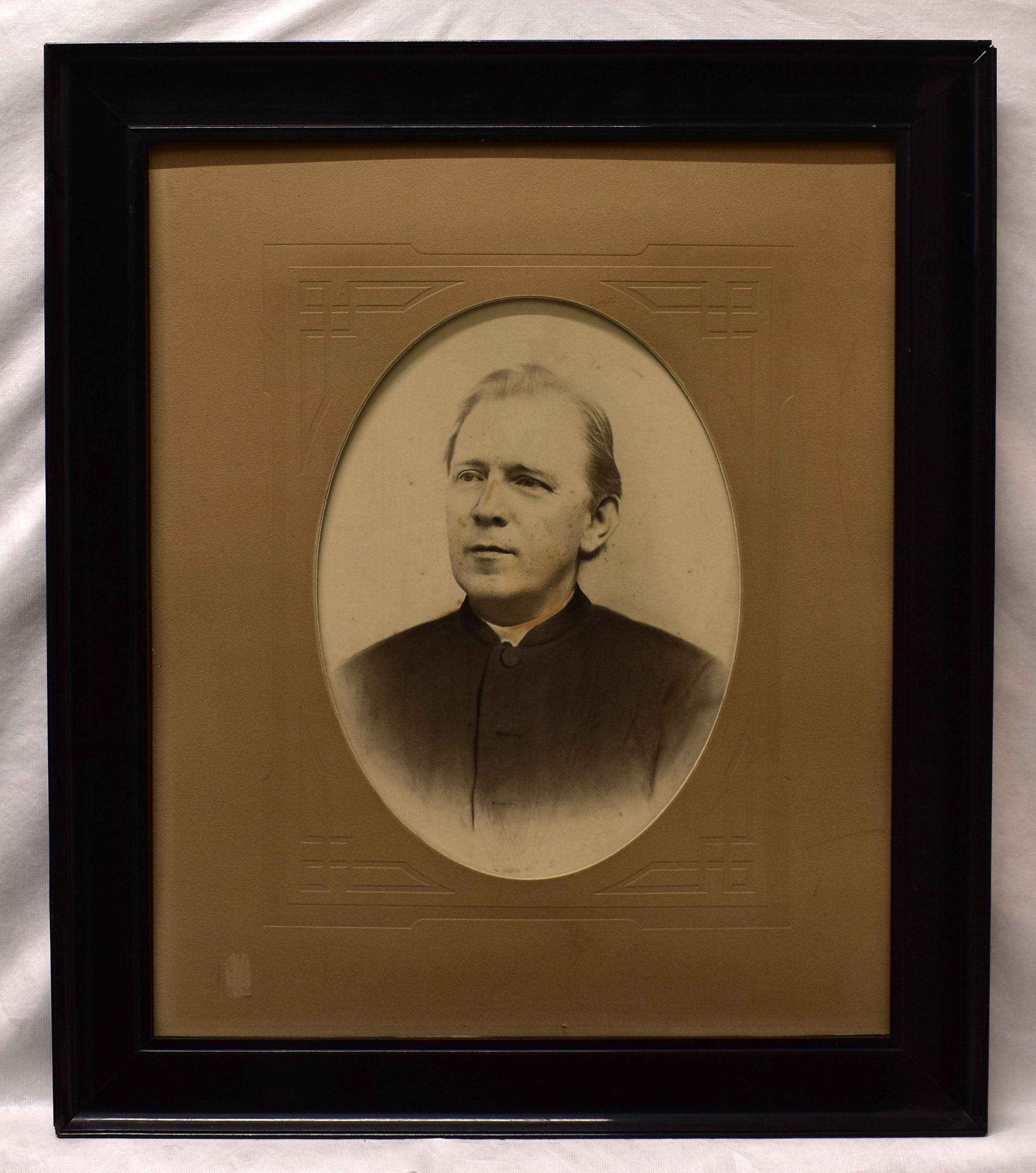 Bijgewerkt portret van een geestelijke, in ovaal passe-partout