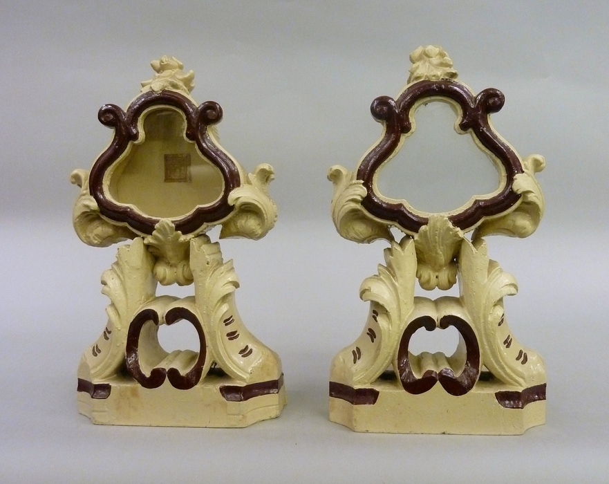 Reliekhouder zonder relieken, wit geschilderd met versiering in donkerrode verf