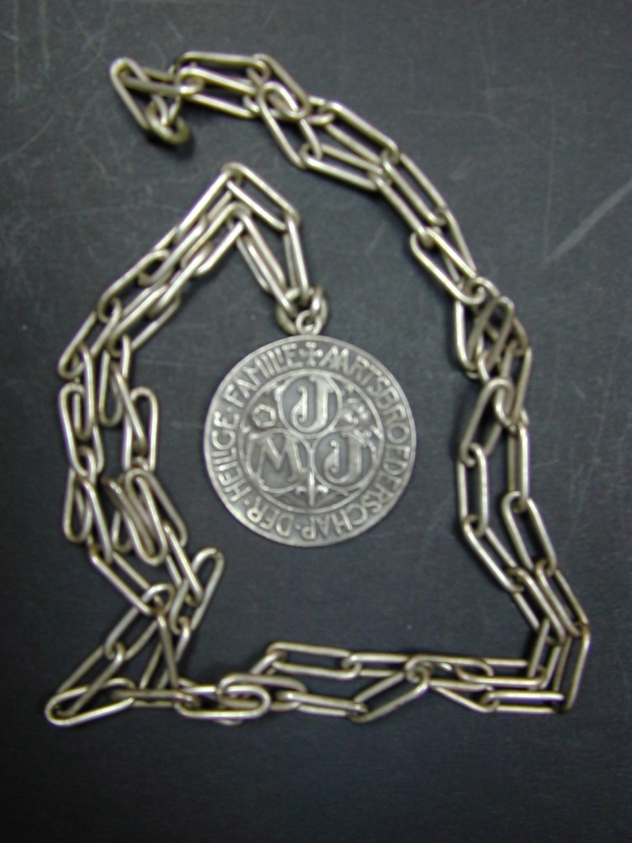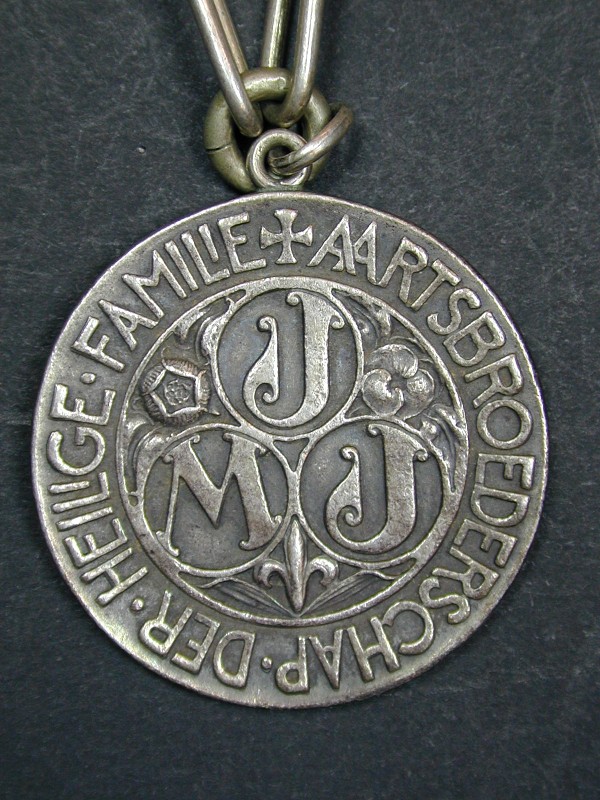 Medaille van de Aartsbroederschap van de H. Familie aan een metalen ketting