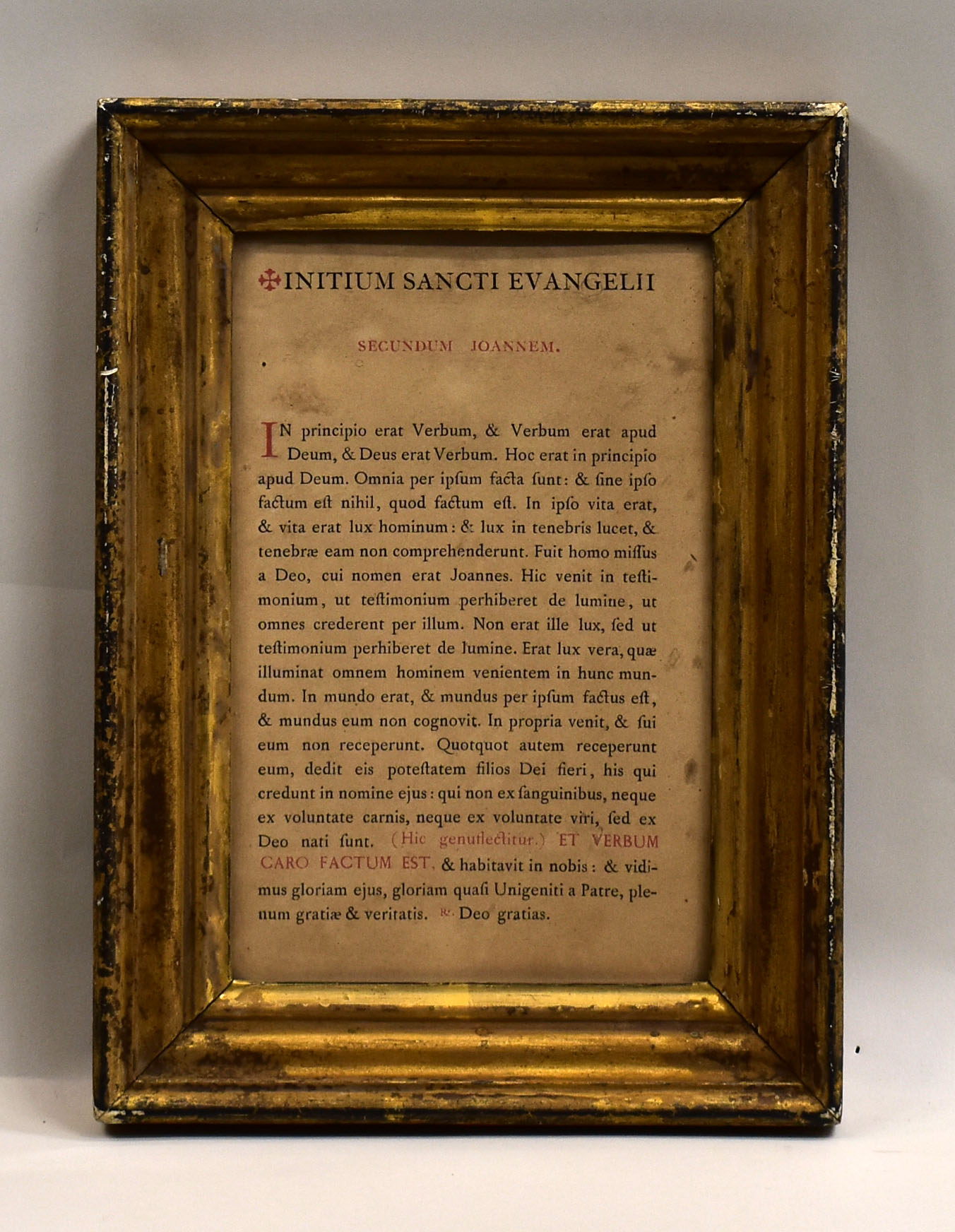 Canonbord met "Initium sancti evangelii secundum joannem ..." in vergulde lijst
