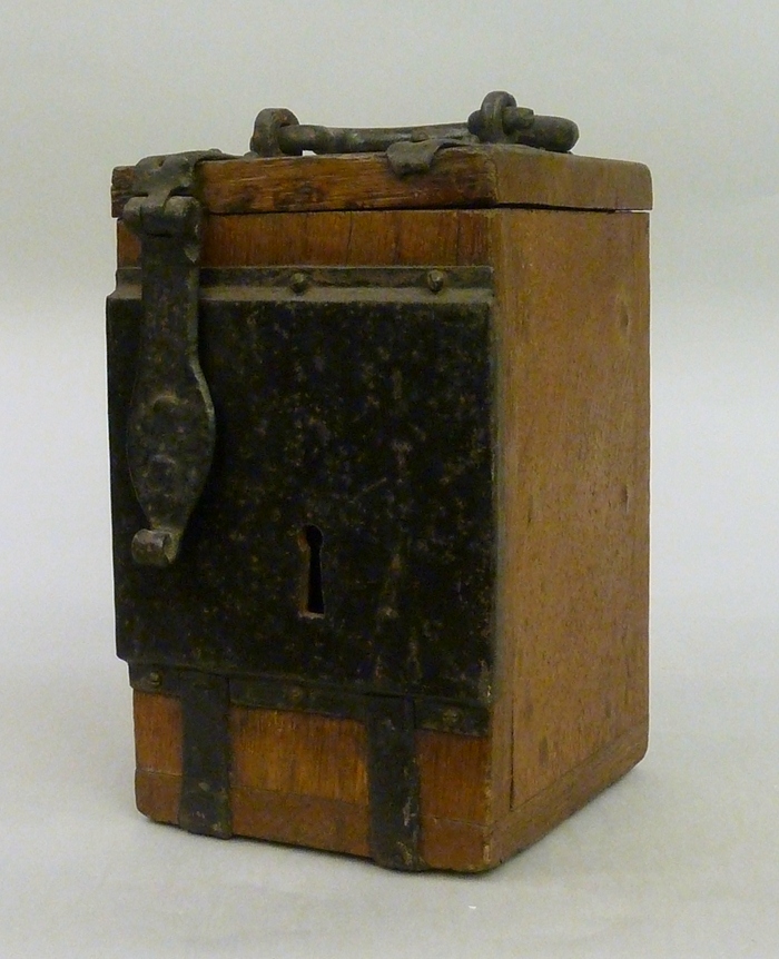 Offerblok met zwart geschilderd ijzeren beslag
