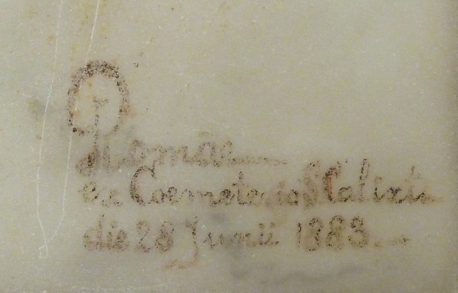Stuk marmer met Christusmonogram, achterop "Romae ex coemeterio S. Calixti die 28 Juni 1883"