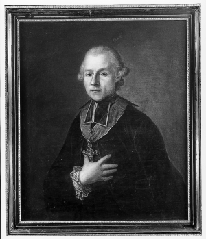 Linksonder gesigneerd en gedateerd: P.s Jouffroy / fecit. 1769•. Het betreft vermoedelijk een portret van Ambrosius Schmising (1729/1730-na 1805) die van 1768 tot 1793 regent was van het seminarie in Roermond.