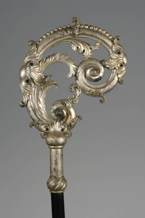 Staf in vijf onderdelen, uitschroefbaar, model van een in zilver uitgevoerd exemplaar