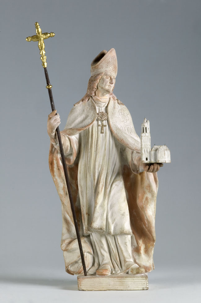Willibrord, bisschop, in rechterhand kruisstaf, in linkerhand Domkerk