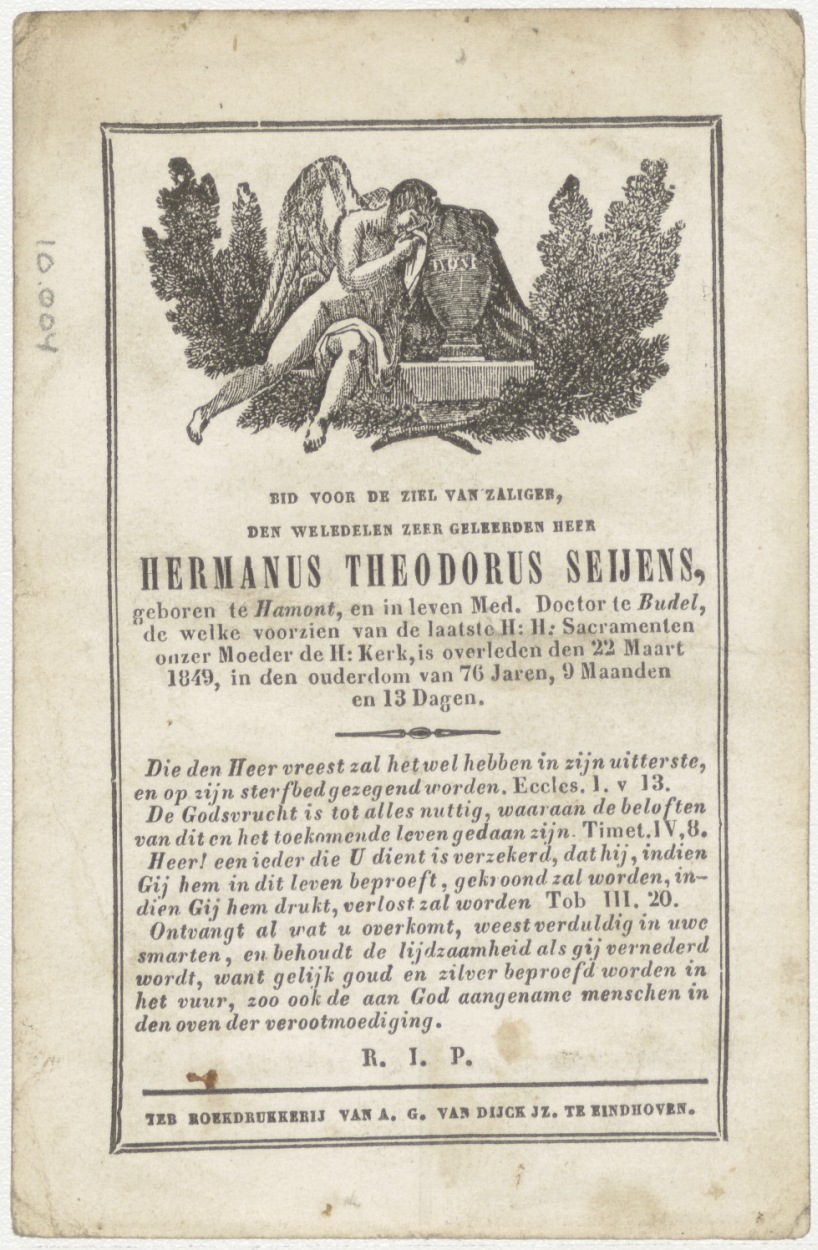 Allegorie op de hoop (Frans), kz. Bid voor ziel Seyens (+1849) Budel