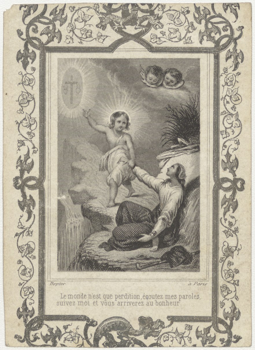 Christuskind; volg mij voor het geluk (Frans), kz. Bid voor ziel Kulkens (+1849) Rotterdam
