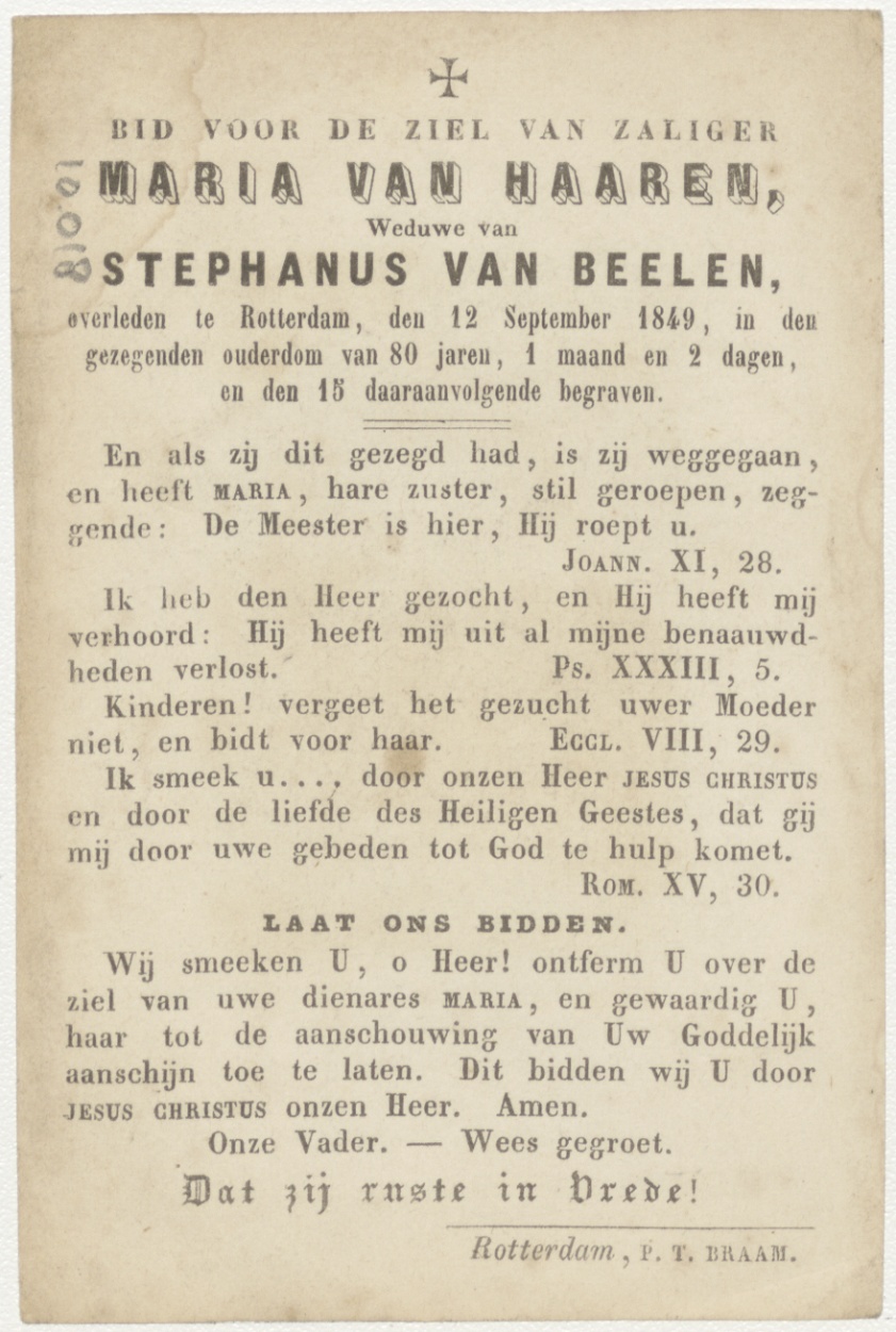 Vlucht naar Egypte (Frans), kz. Bid voor ziel Van Haaren-van Beelen (+1849) Rotterdam