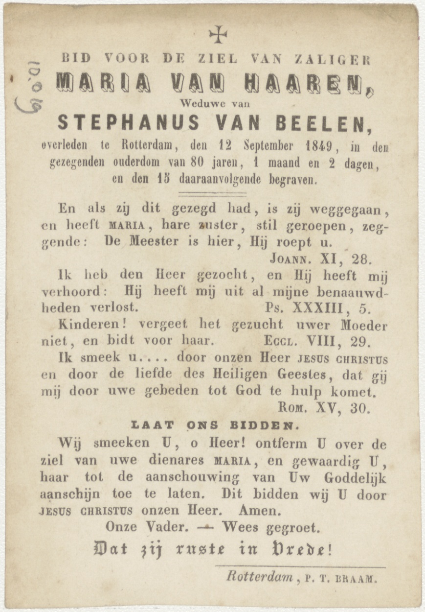 H. Drie-eenheid met Maria onbevlekt ontvangen (Frans), kz. Bid voor ziel Van Haaren-van Beelen (+1849)