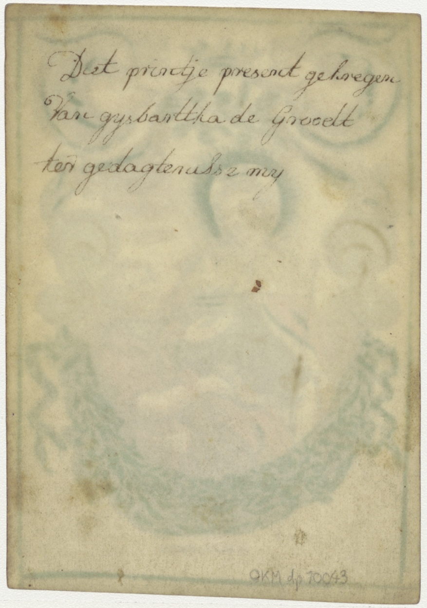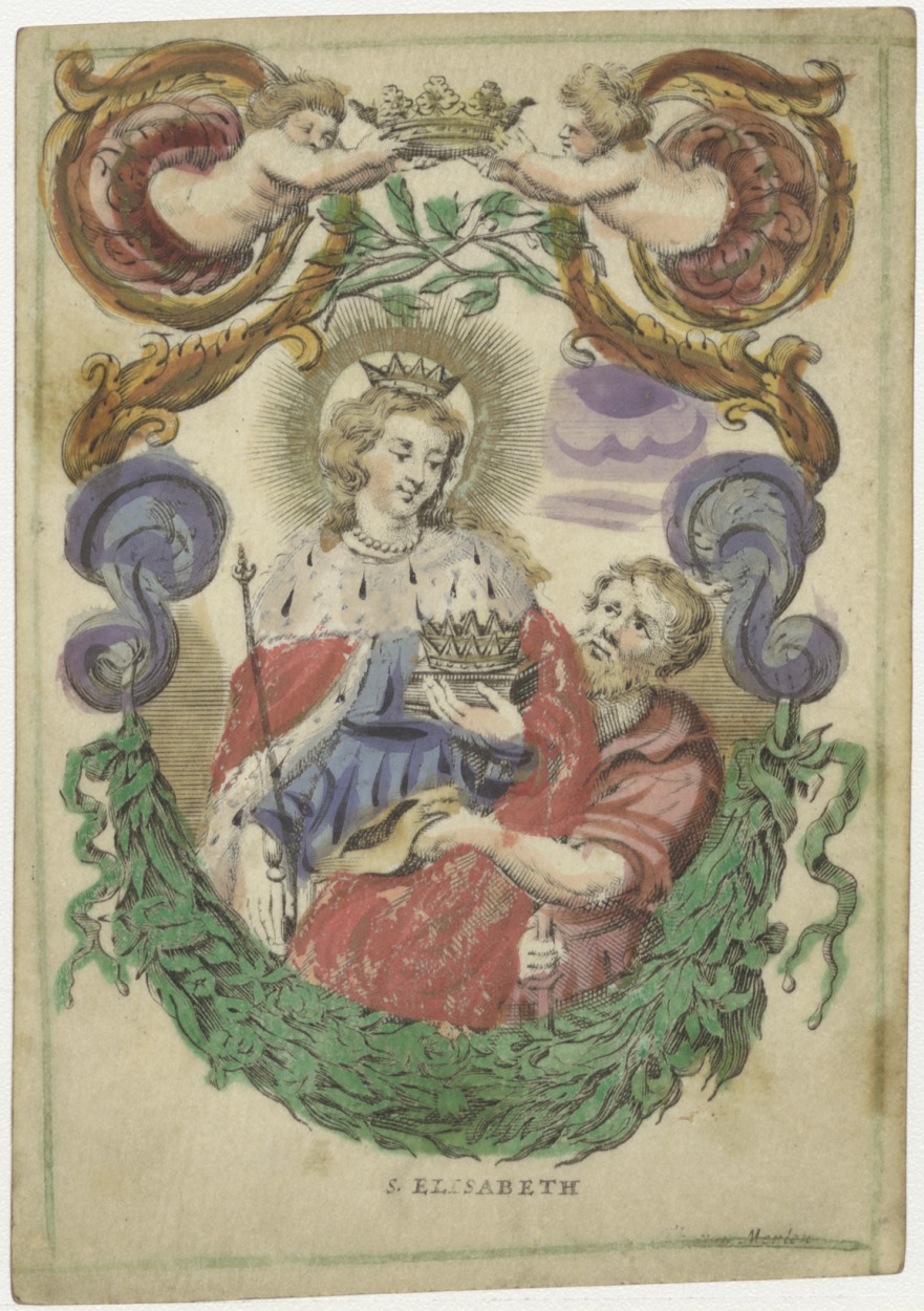 H. Elisabeth (van Thüringen), ingekleurd, kz. Dit printje present gekregen van Gijsbartha de Groodt ter gedachtenis mij