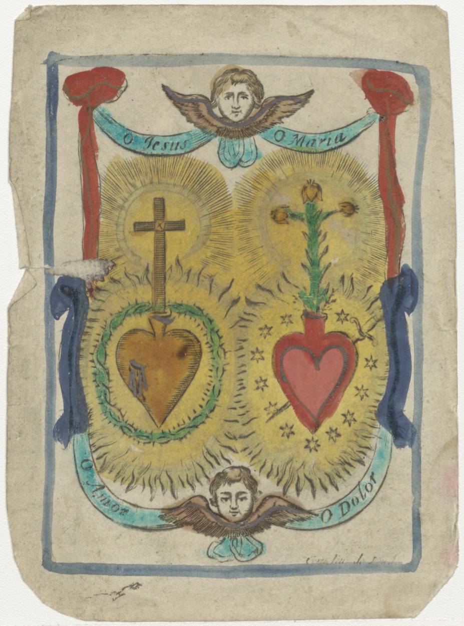 H. Hart van Christus, H. Hart van Maria, ingekleurd, kz. Johannes A. Corton (+1839), R. Corton (+1855), dubbelgebruik
