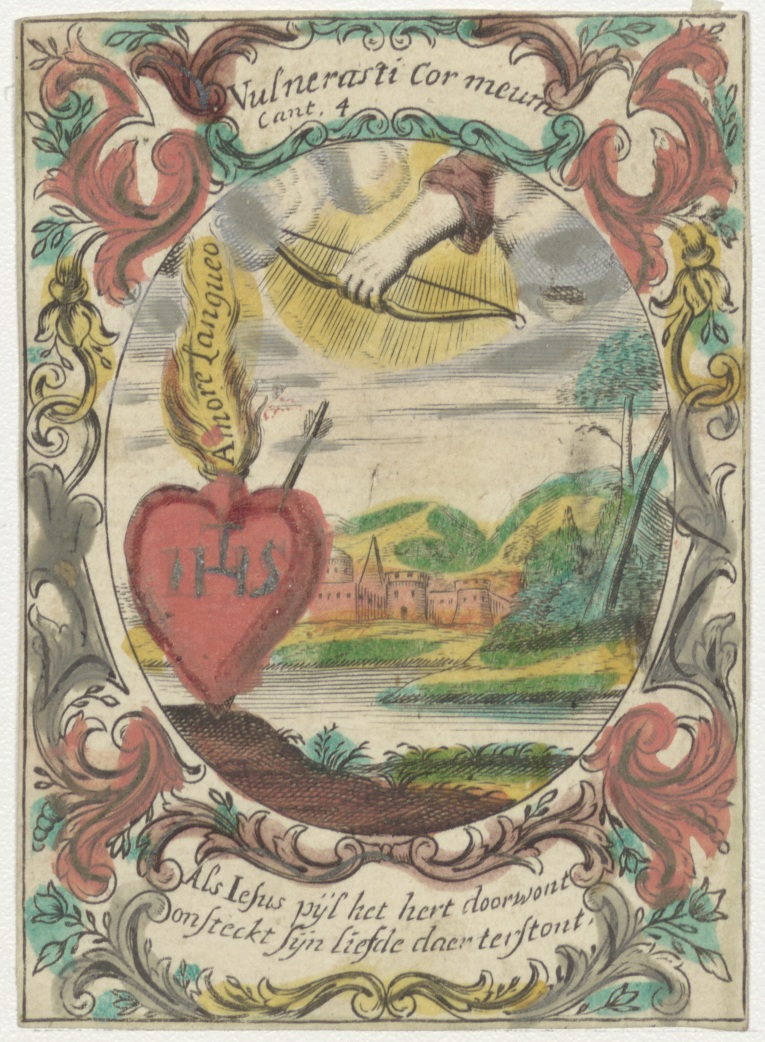 Het H. Hart van Christus, door een pijl doorschoten, ingekleurd