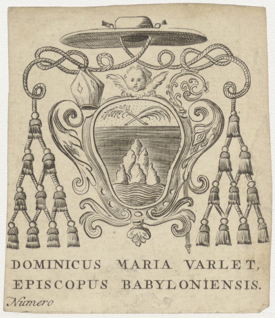 Wapen van Dominicus Maria Varlet, titulair bisschop van Babylon, met "... episcopus Babyloniensis"