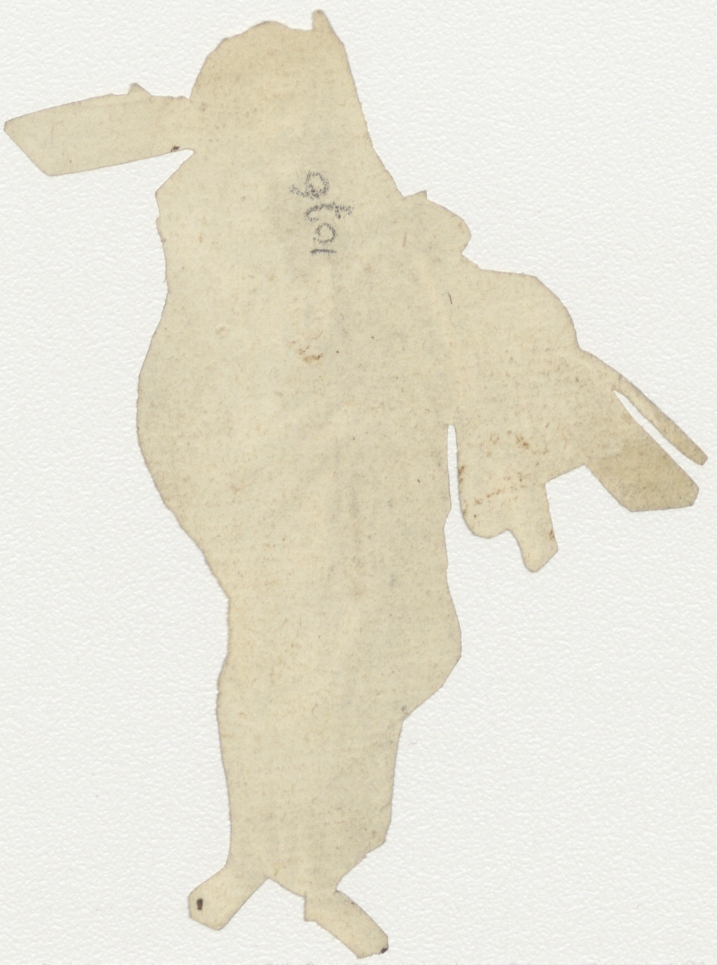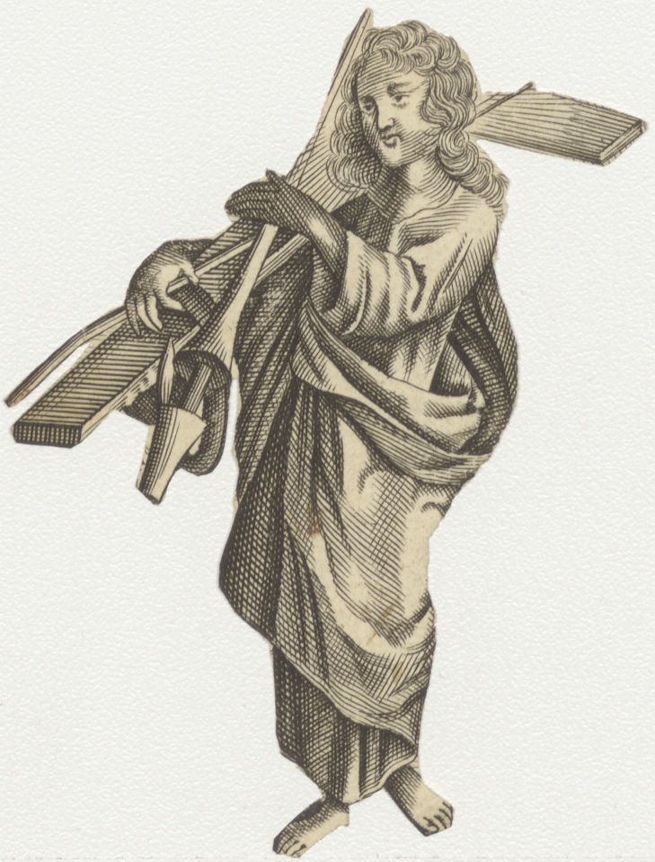 Christus(?) die het kruis (enz.) draagt, uitgeknipt