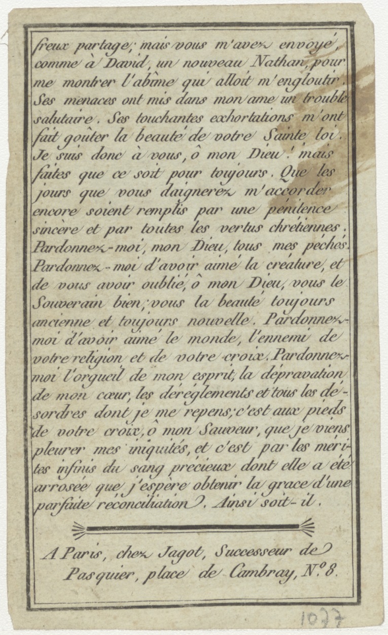 Maria Magdalena(?) Amende Honorable (Frans) met gebed, kz. gebed;(Frans);