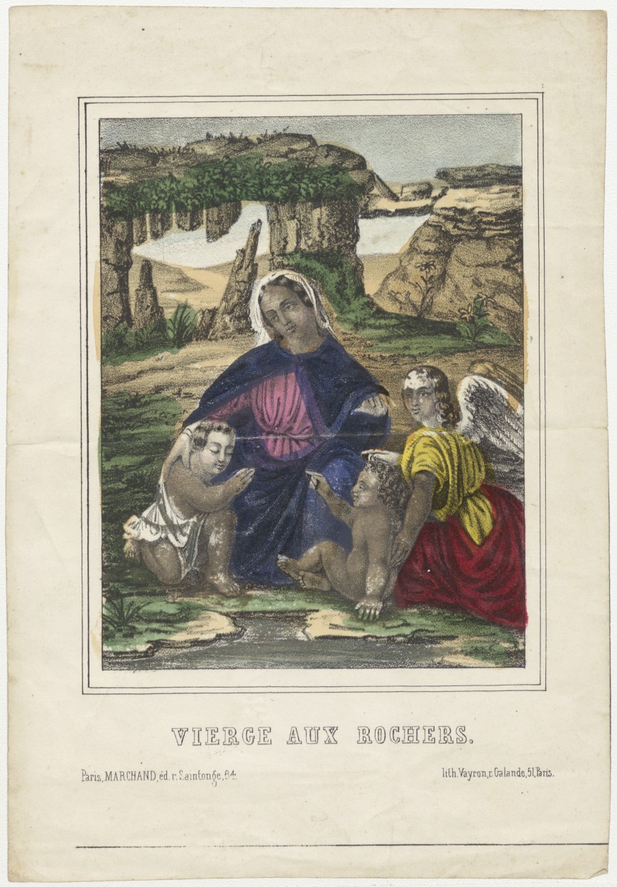 Maria met Christuskind en Johannes met engel (vierge aux rochers) (Frans), ingekleurd