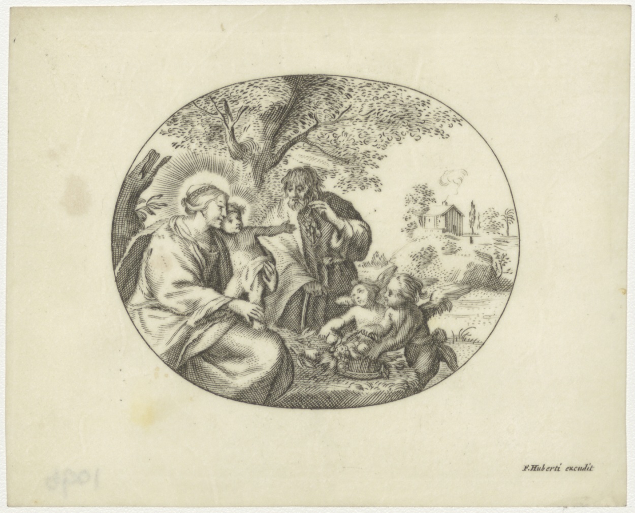 H. Familie, Maria, Christuskind, Jozef en twee engelen in landschap