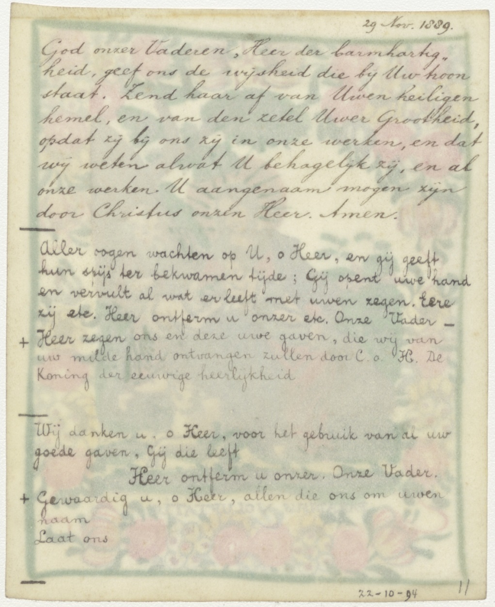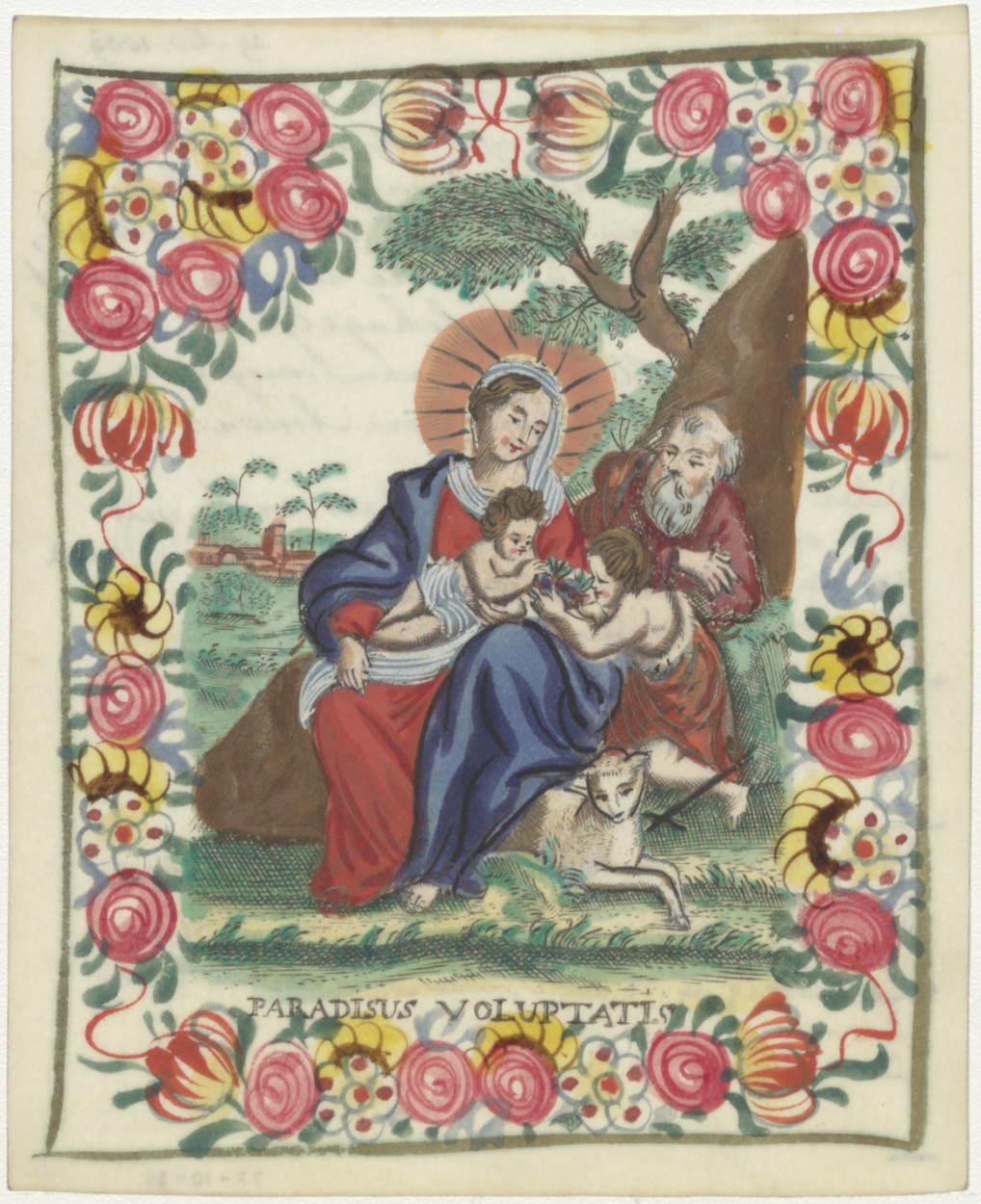 H. Familie met Johannes, Paradisus Voluptatis, ingekleurd, kz. gebeden;1889;
