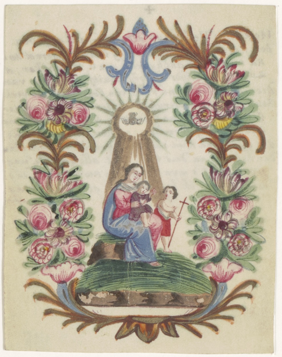 Maria met kind en Johannes de Doper, ingekleurd, kz. gedicht;
