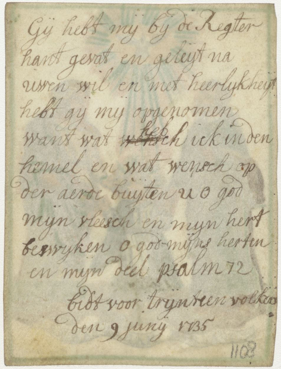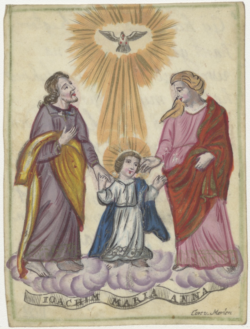 Joachim, Maria en Anna, ingekleurd, kz. 1735, Bid voor Trijntien Volkers, met psalm