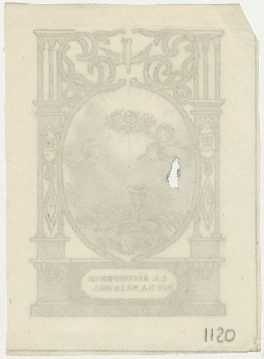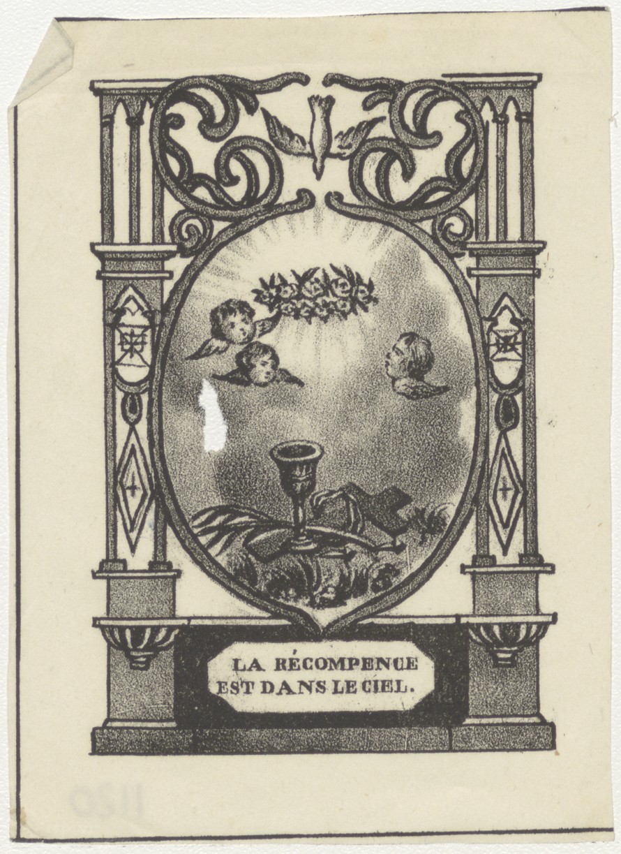 Kelk op kruis met engelen, de beloning is in de hemel (Frans)