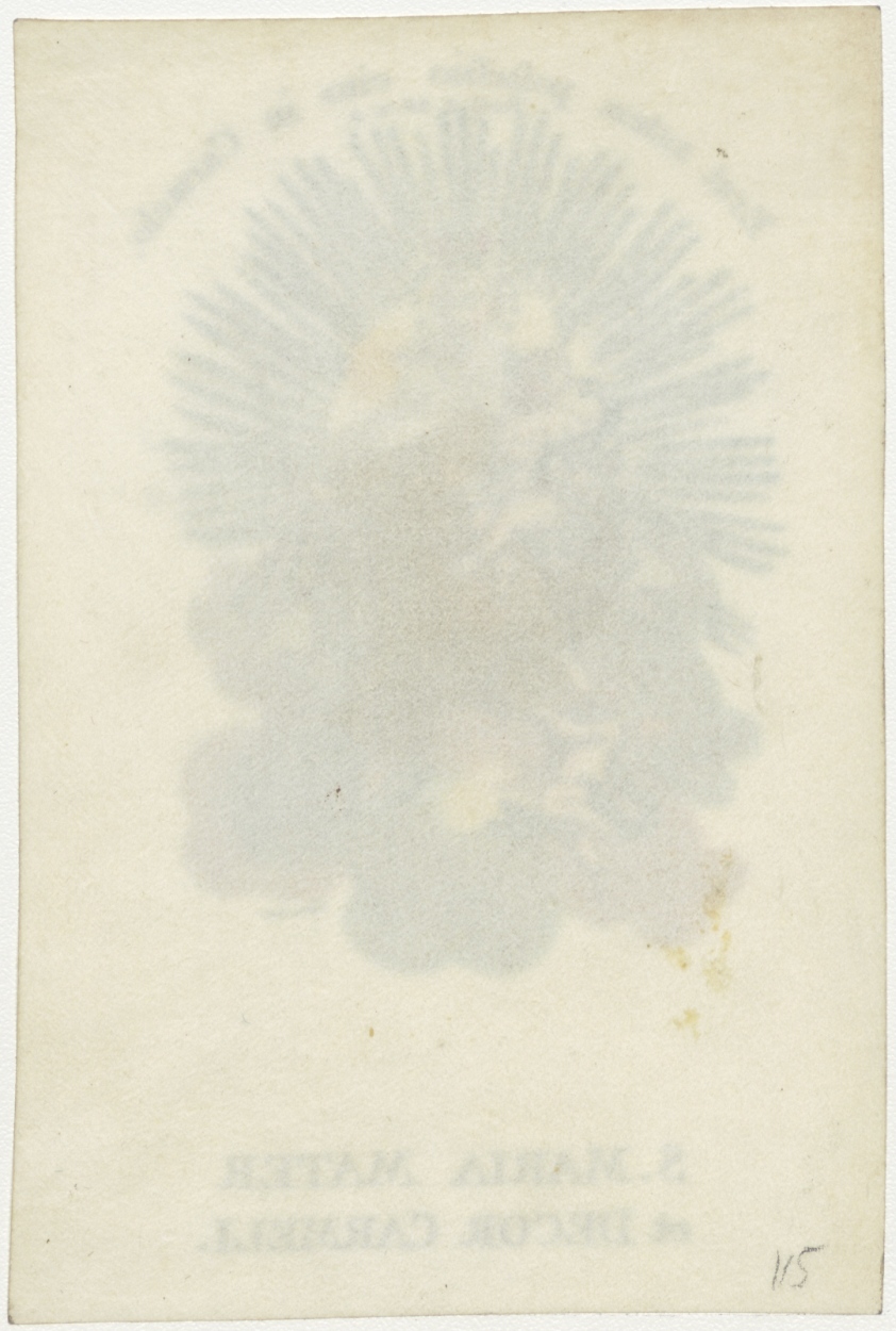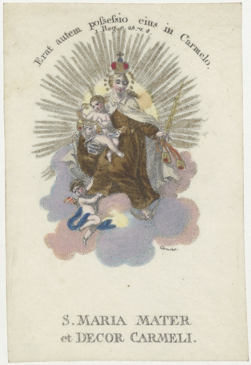 Maria met Christuskind in de wolken Mater Decor Carmeli, ingekleurd