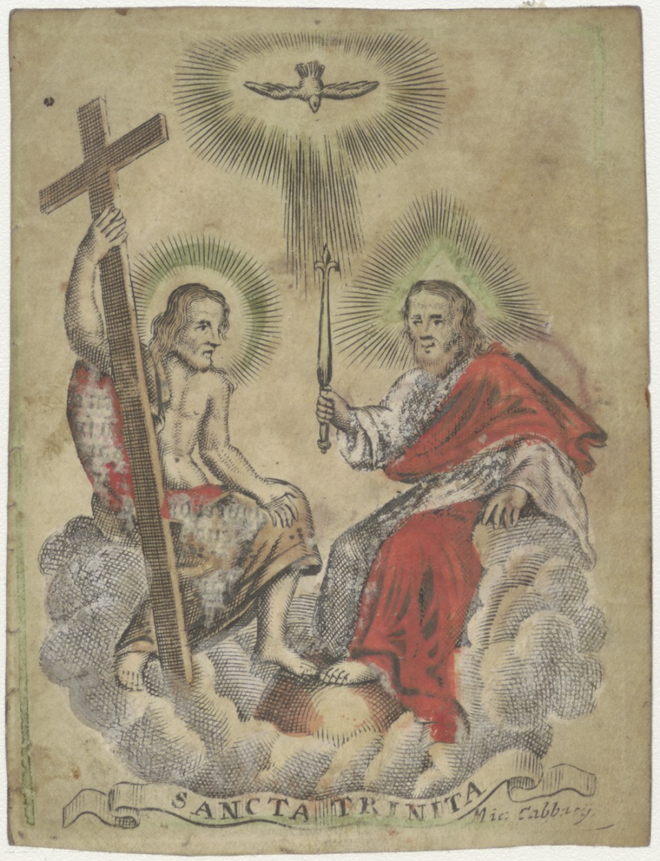 Gebed, H. Drie-eenheid, Trinité, God de vader, de zoon Christus en de H. Geest, ingekleurd