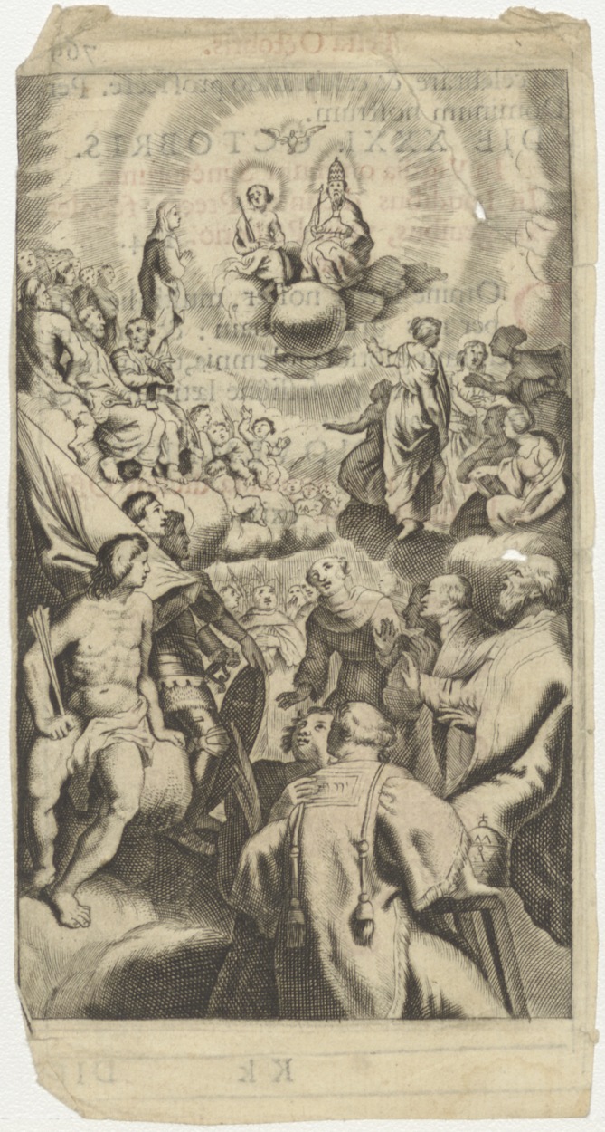 H. Trinité, H. Drie-eenheid, aanbeden door mensen, kz. drukwerk (Latijn);