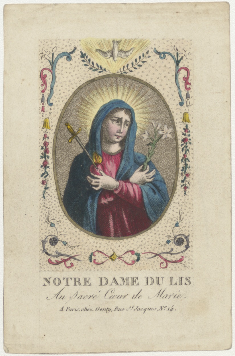 H. Hart van Maria (Frans), O.L.V. met lelietak en duif, ingekleurd