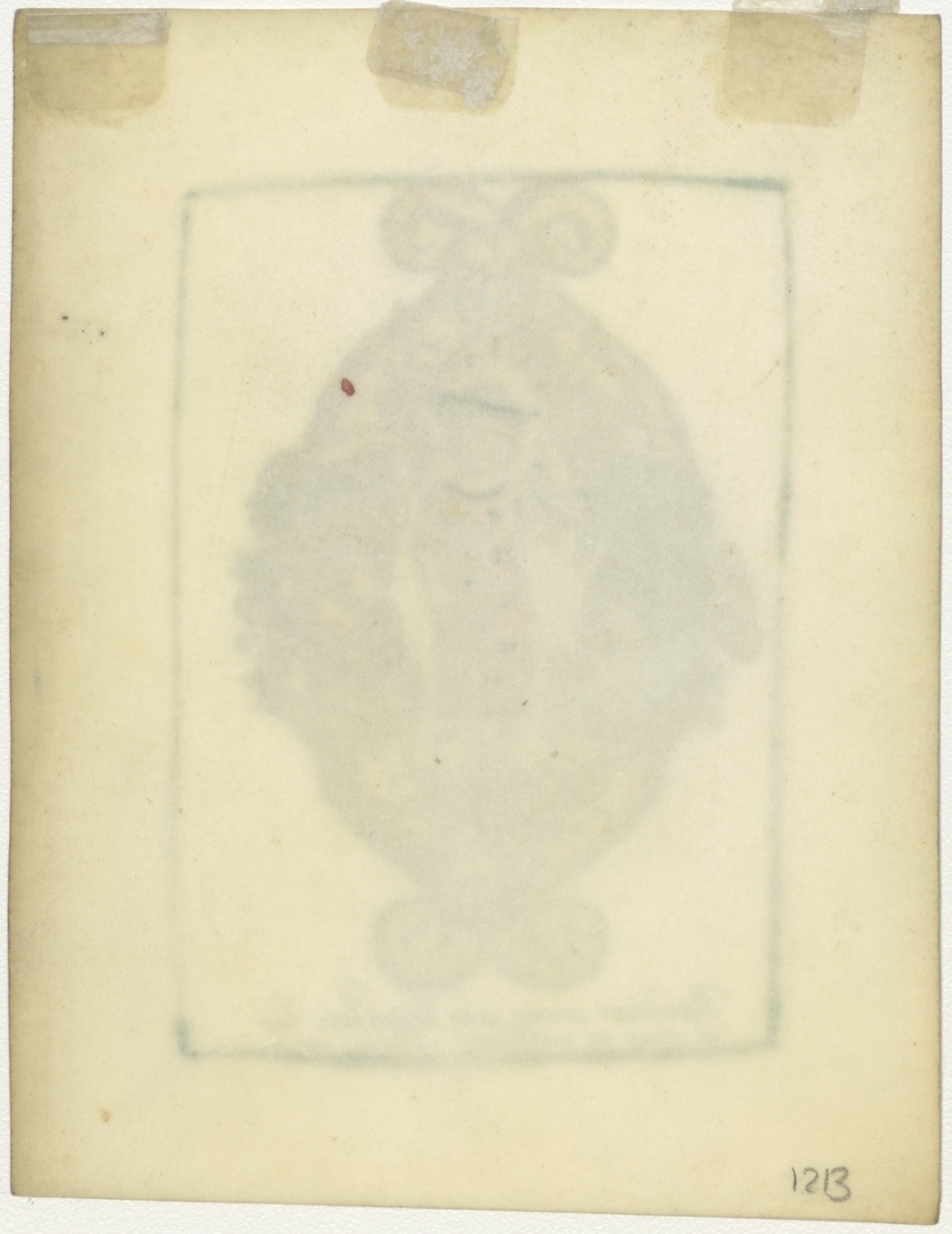 Christuskind met kruisvaan, Salvator Mundi(?), met "Benedices coronae anni benignitatis tuae ... psal 64", ingekleurd