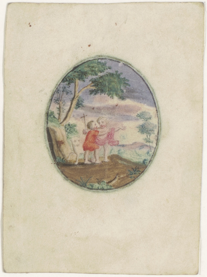 Christuskind met Johannes, in ovaal, ingekleurd