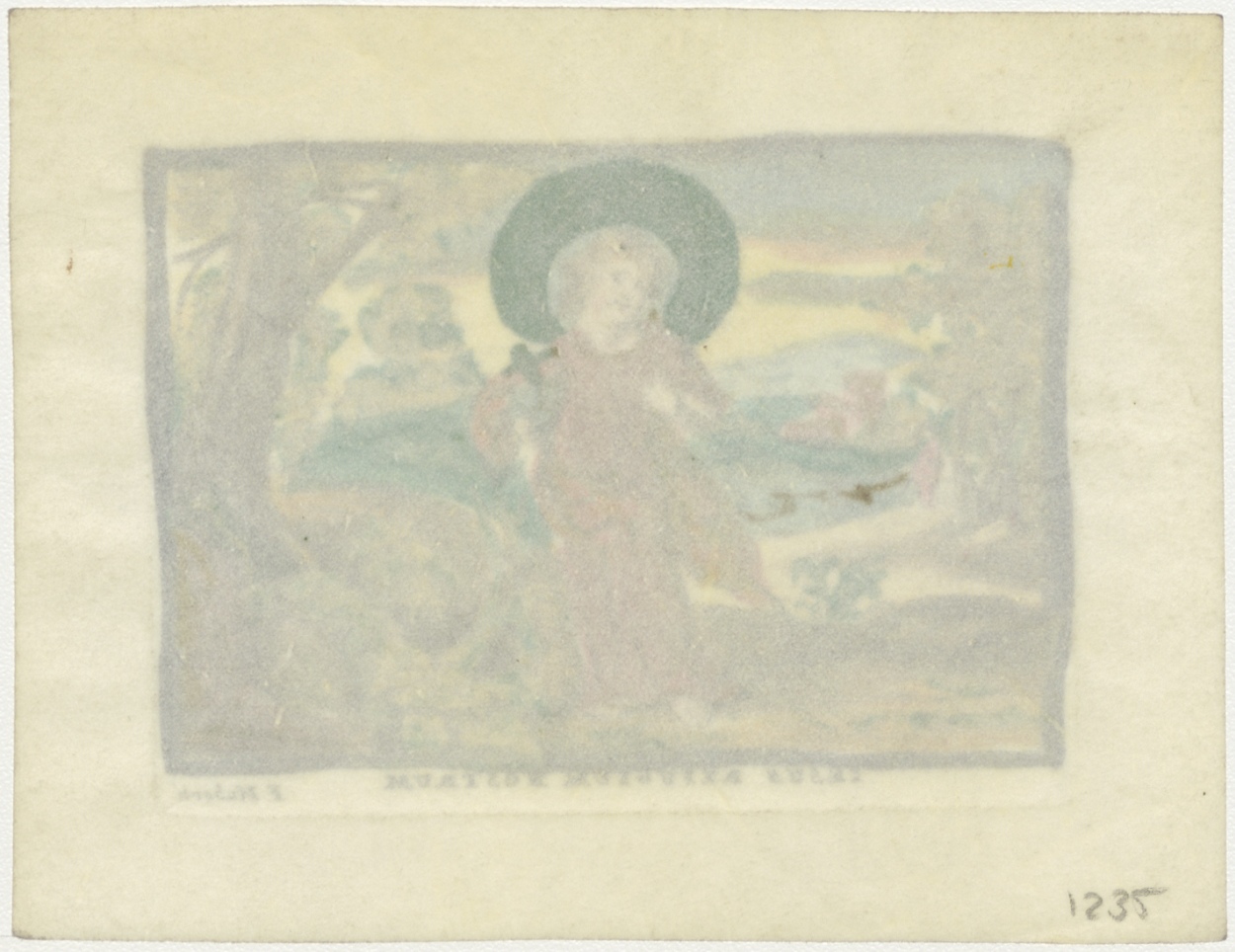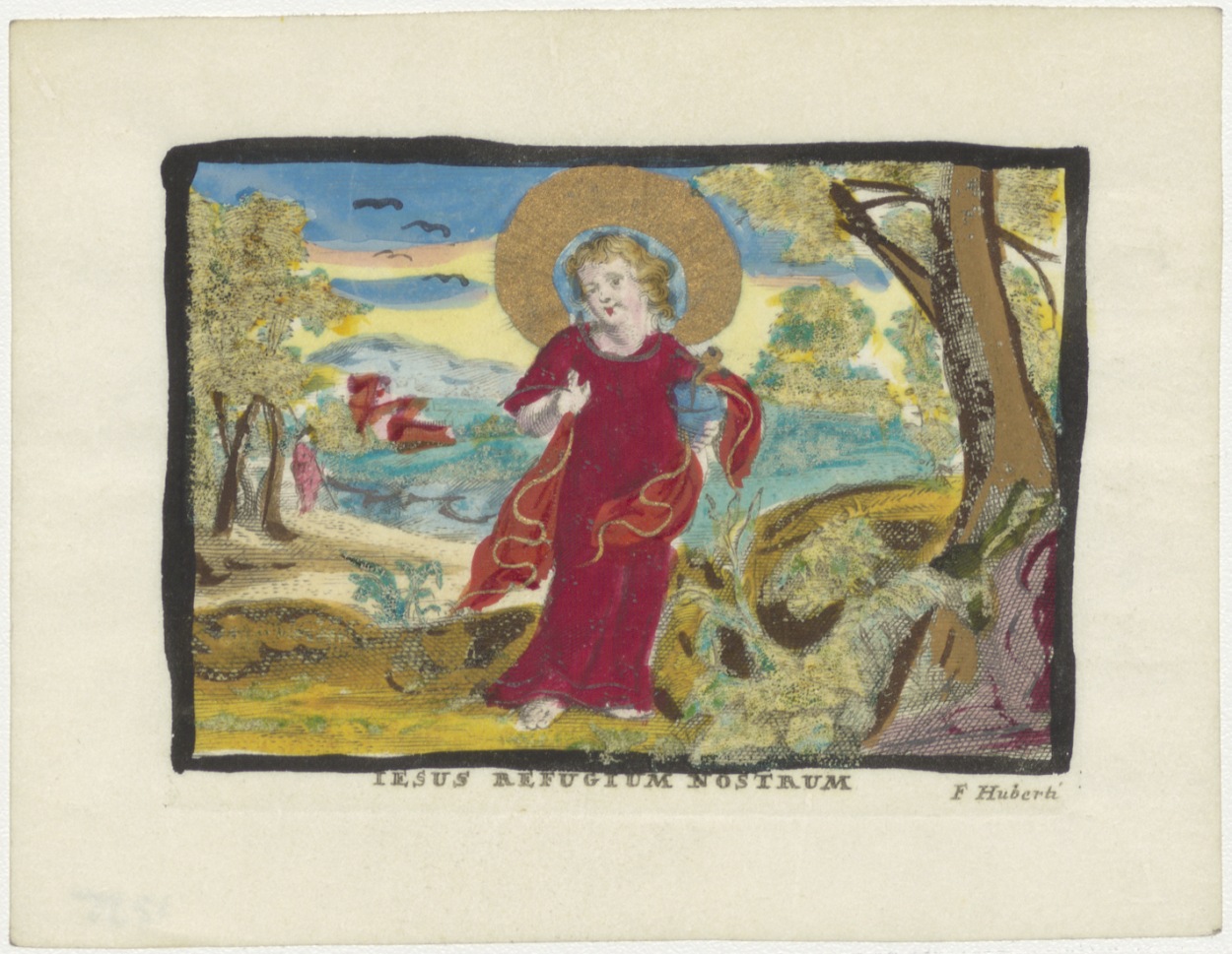 Christuskind in landschap, ingekleurd
