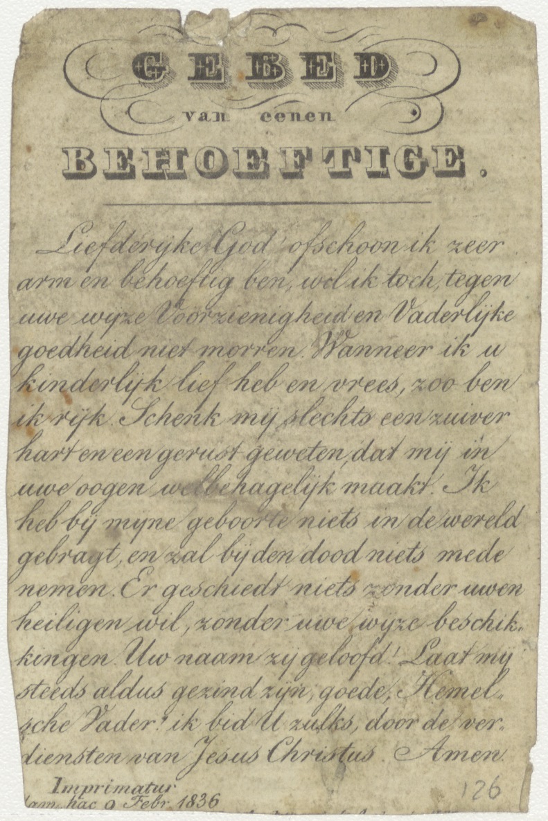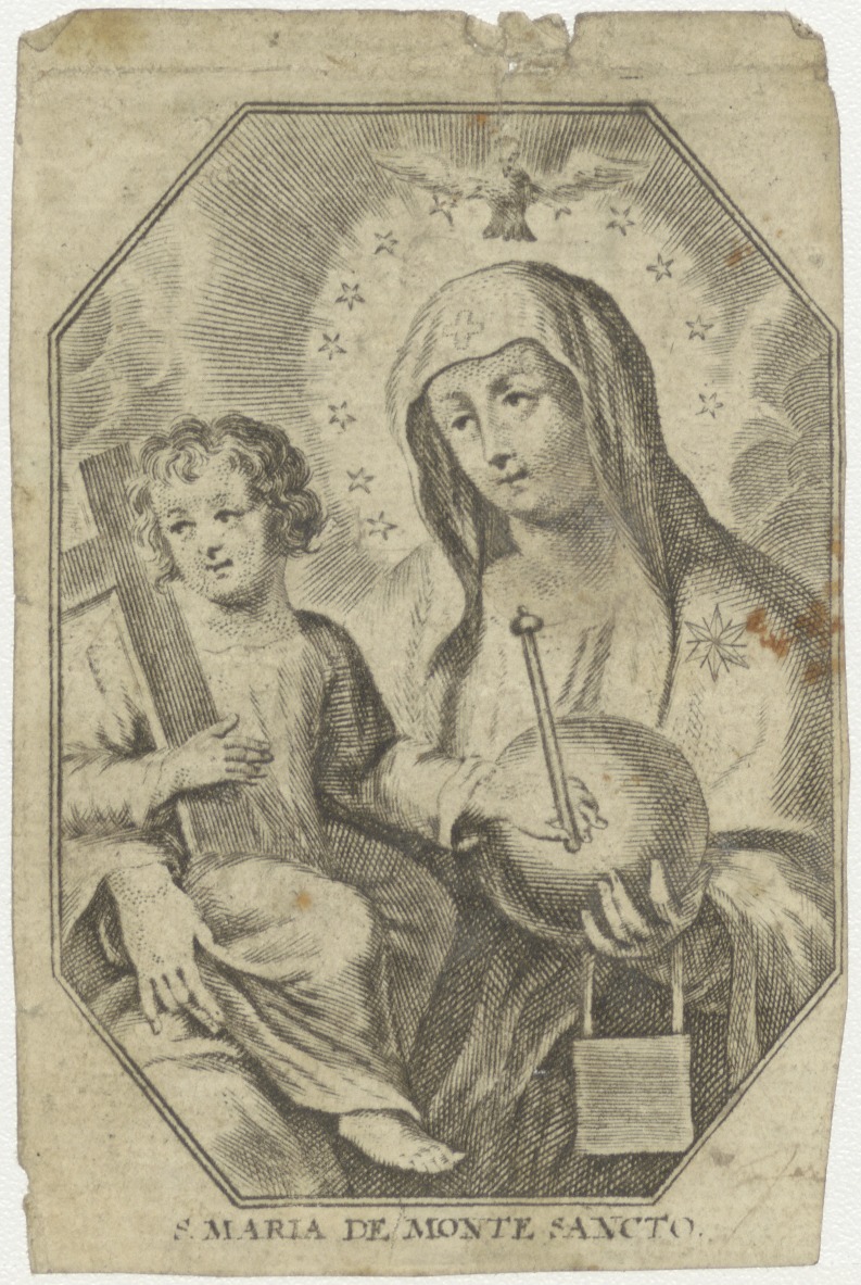 H. Maria de Monte Sancto, Maria met Christuskind en duif, kz. Gebed van eenen behoeftige;1836;