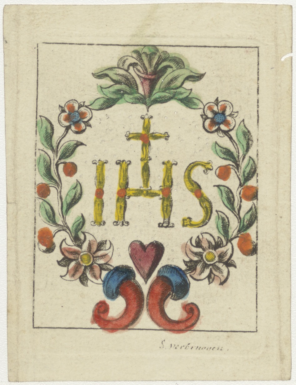 IHS, met hart en kruis als symbool voor Christus, ingekleurd