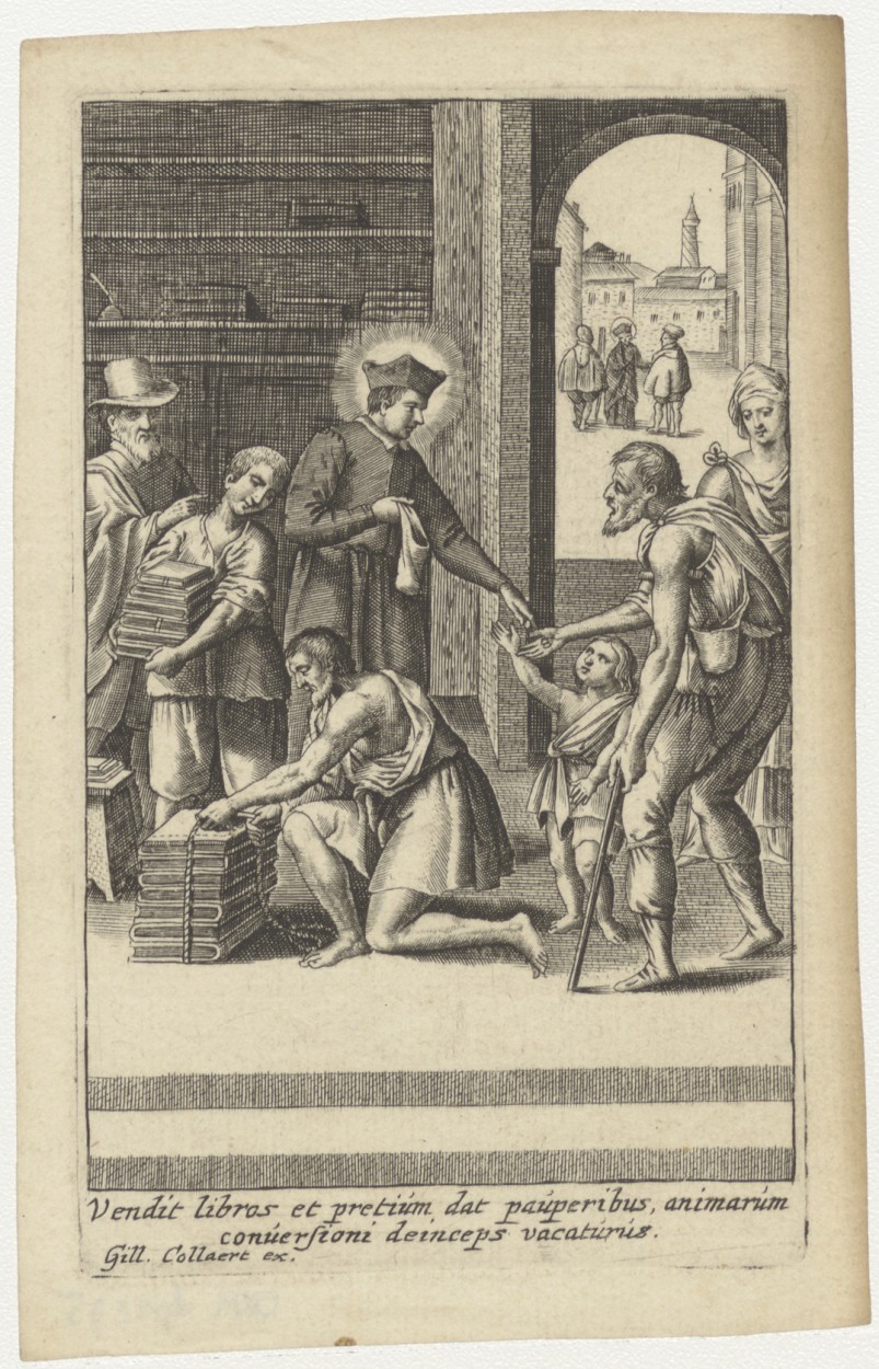 Philippus Neri deelt geld uit aan de armen na de verkoop van zijn boeken