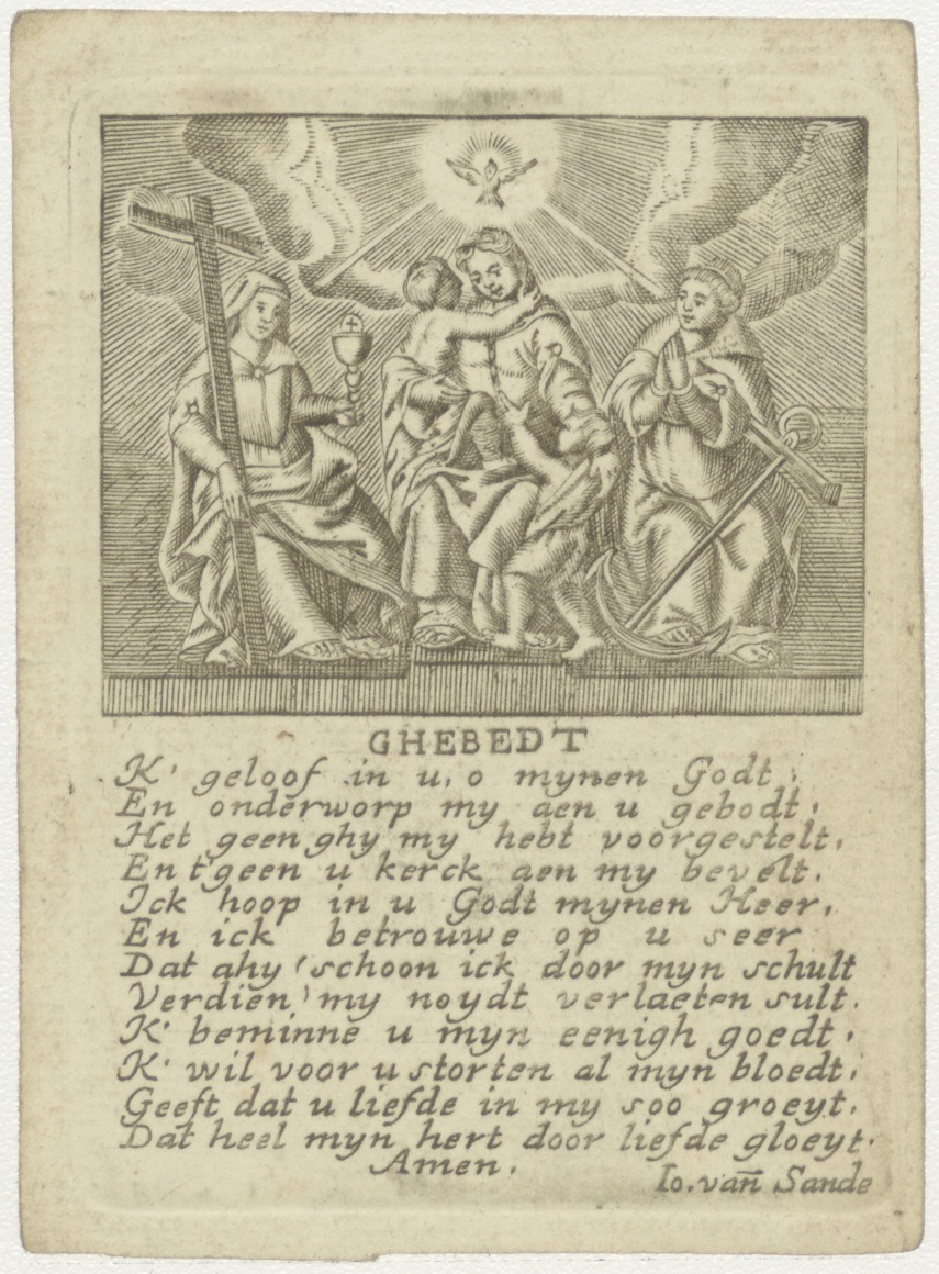 Geloof, hoop en liefde, met gebed "'k geloof in u, o mijnen Godt ..."