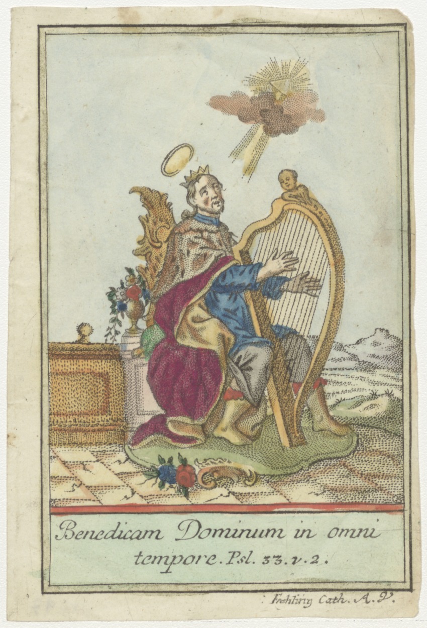 David en de harp (Ps.33:2), ingekleurd