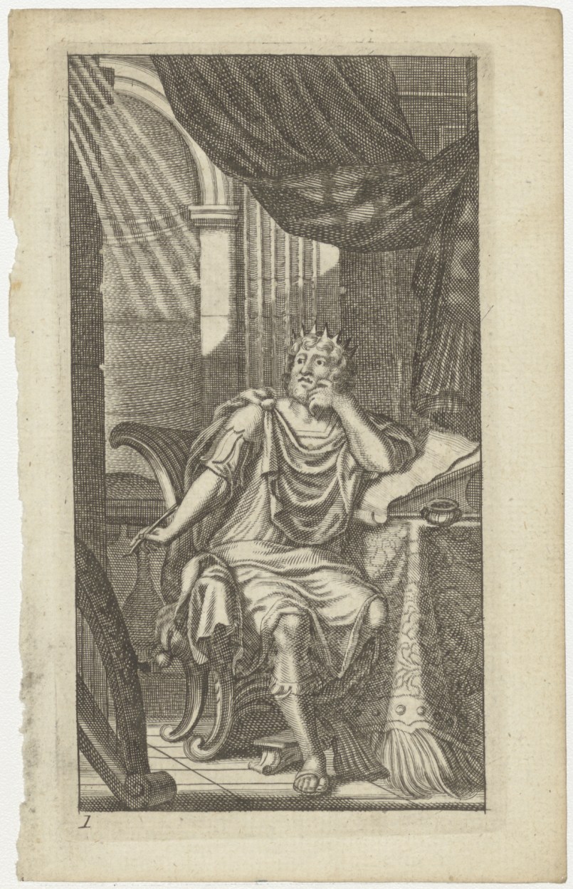 Koning David(?) achter zijn schrijftafel