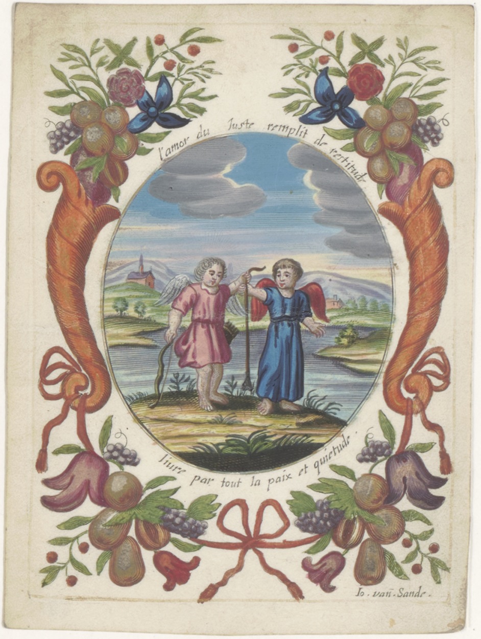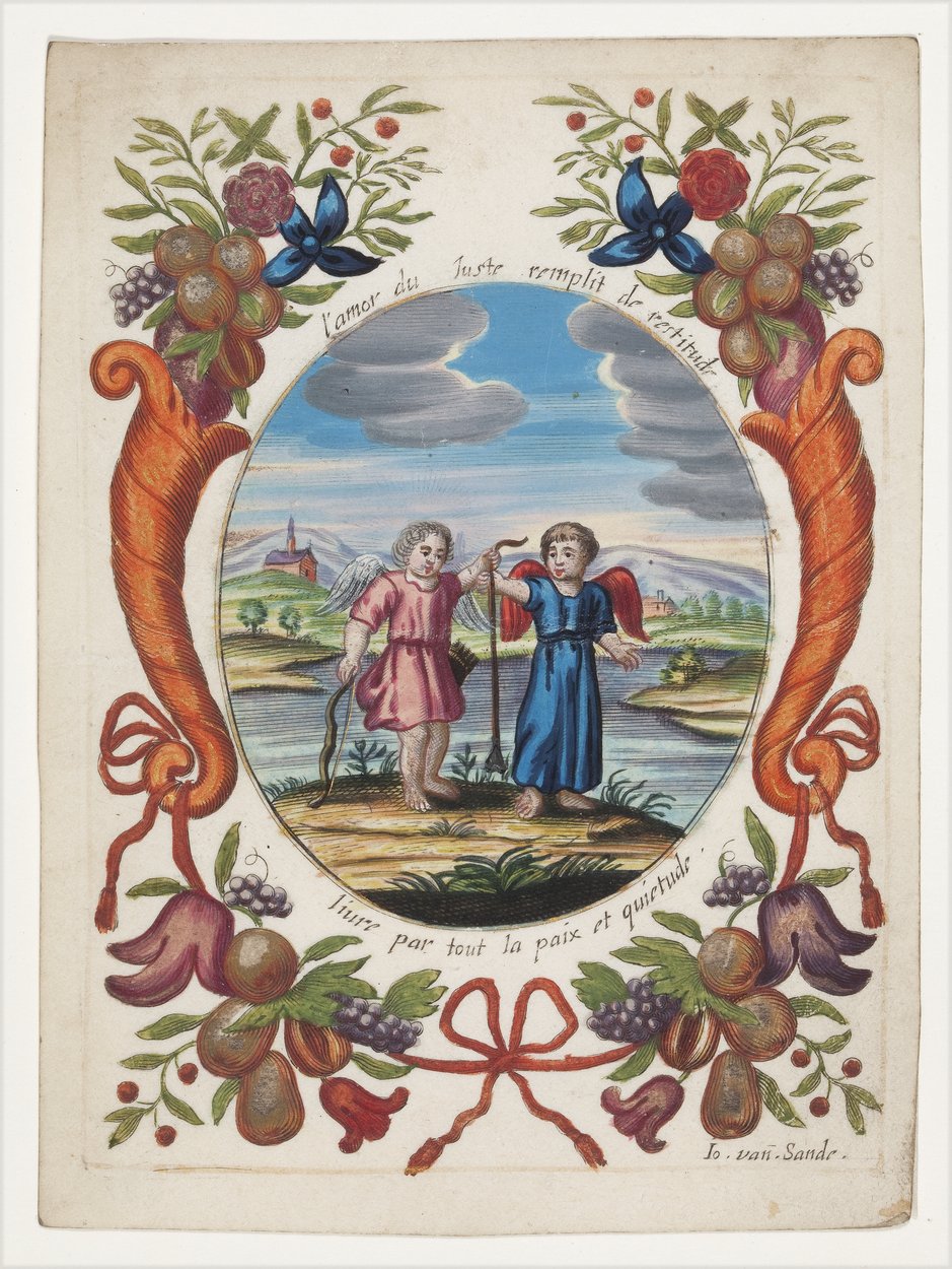 Twee engelen in landschap, ingekleurd