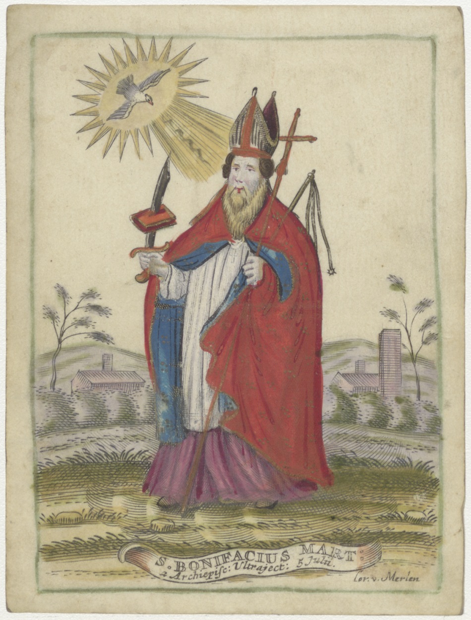 H. Bonifacius, martelaar bisschop van Utrecht, kz. Religieus, bid voor ziel Johannus de Jong(+1719)