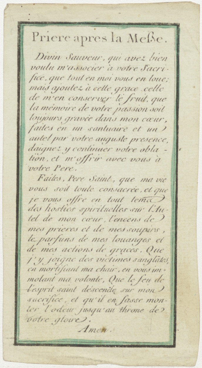 Gebed gedrukt handschrift (Frans)