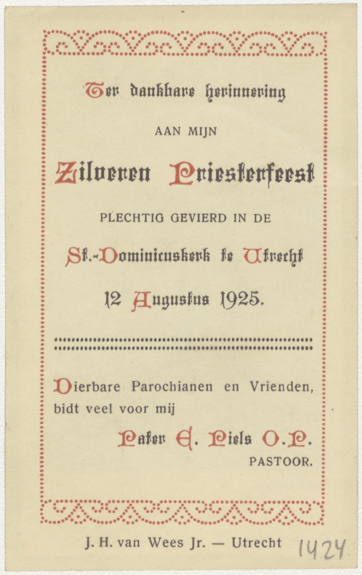 Christus Pastor Bonus, kz. Zilveren priesterfeest pastoor Piels 1925 St. Dominicuskerk Utrecht