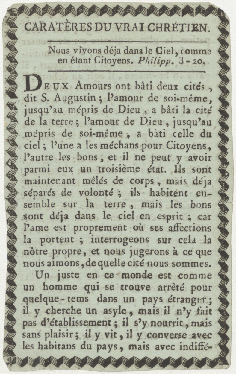 Karakter van de echte christin, tekst (Frans), kz. zie titel